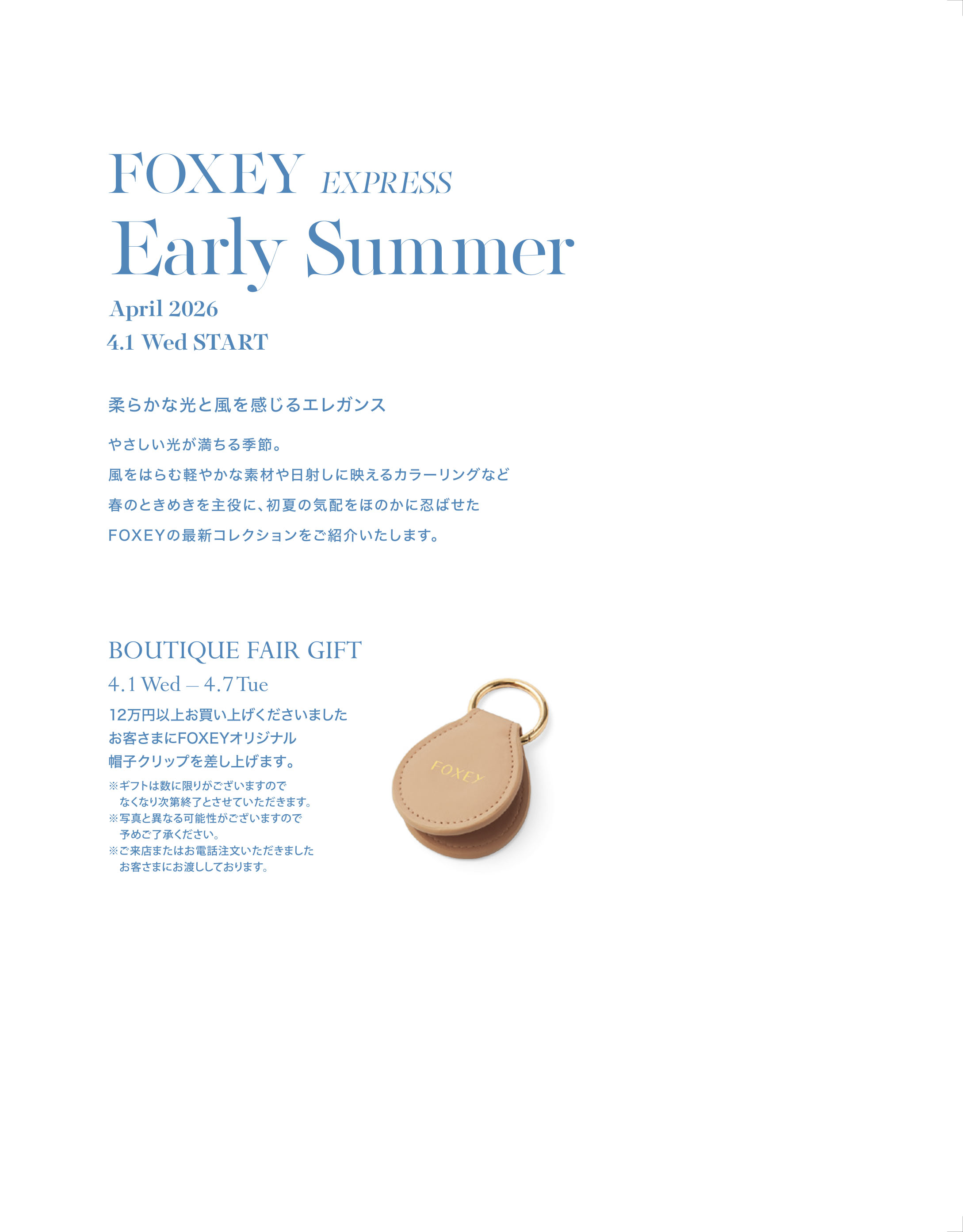 期間中は4月の新作アイテムを先行発売するほか特別なおもてなしもご用意しております。