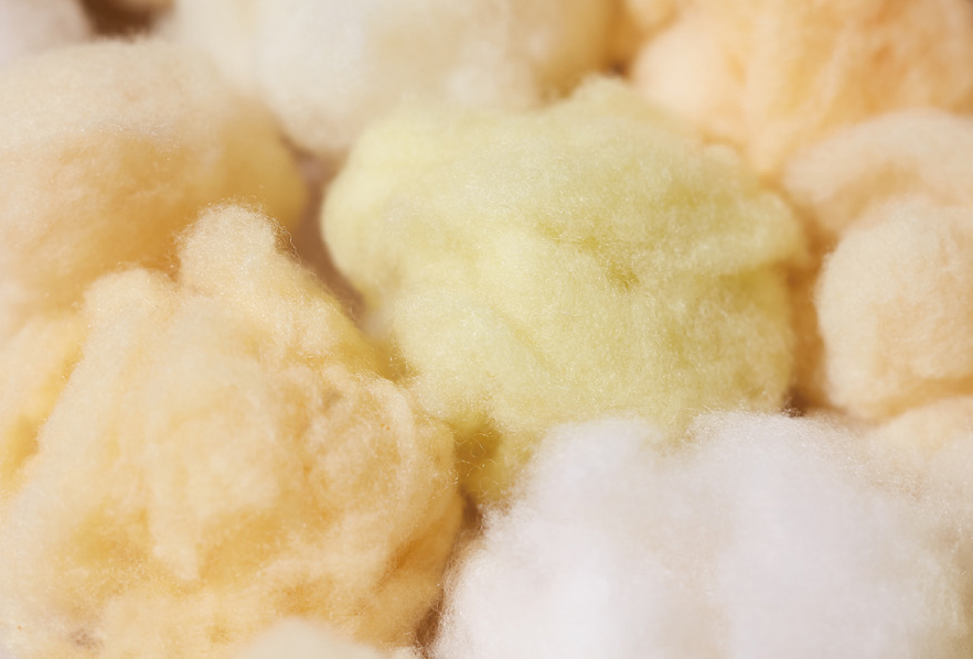 アザミの無数の微細なトゲが繊維の一本一本を優しく起こし、ふんわりとした毛羽をつくり出します。