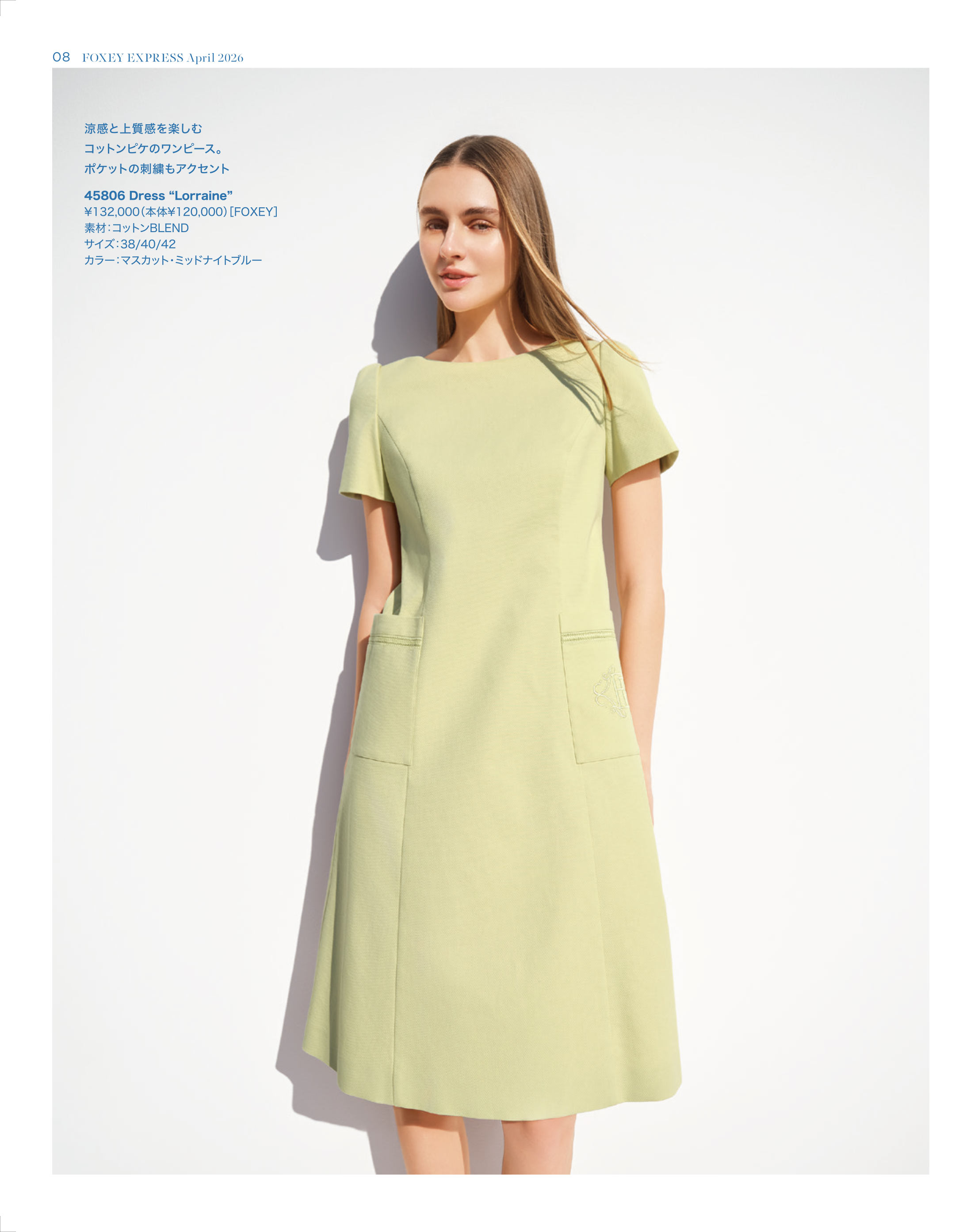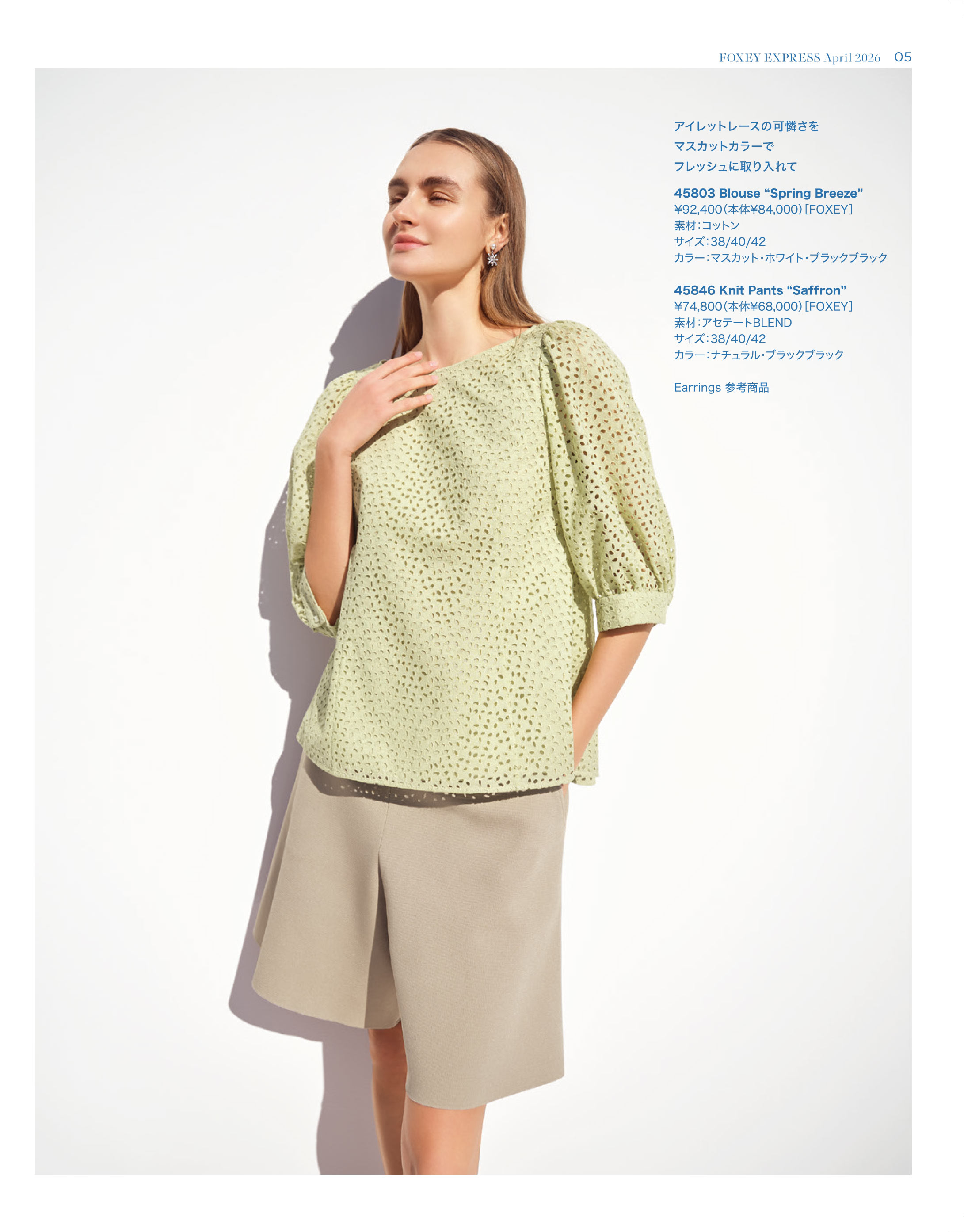 アイレットレースの可憐さをマスカットカラーでフレッシュに取り入れて
