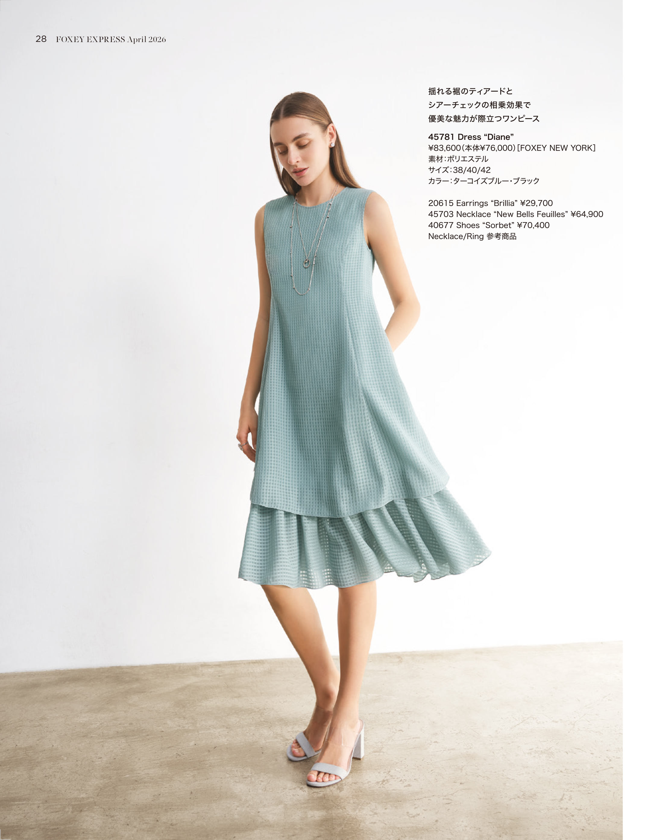 揺れる裾のティアードとシアーチェックの相乗効果で優美な魅力が際立つワンピース