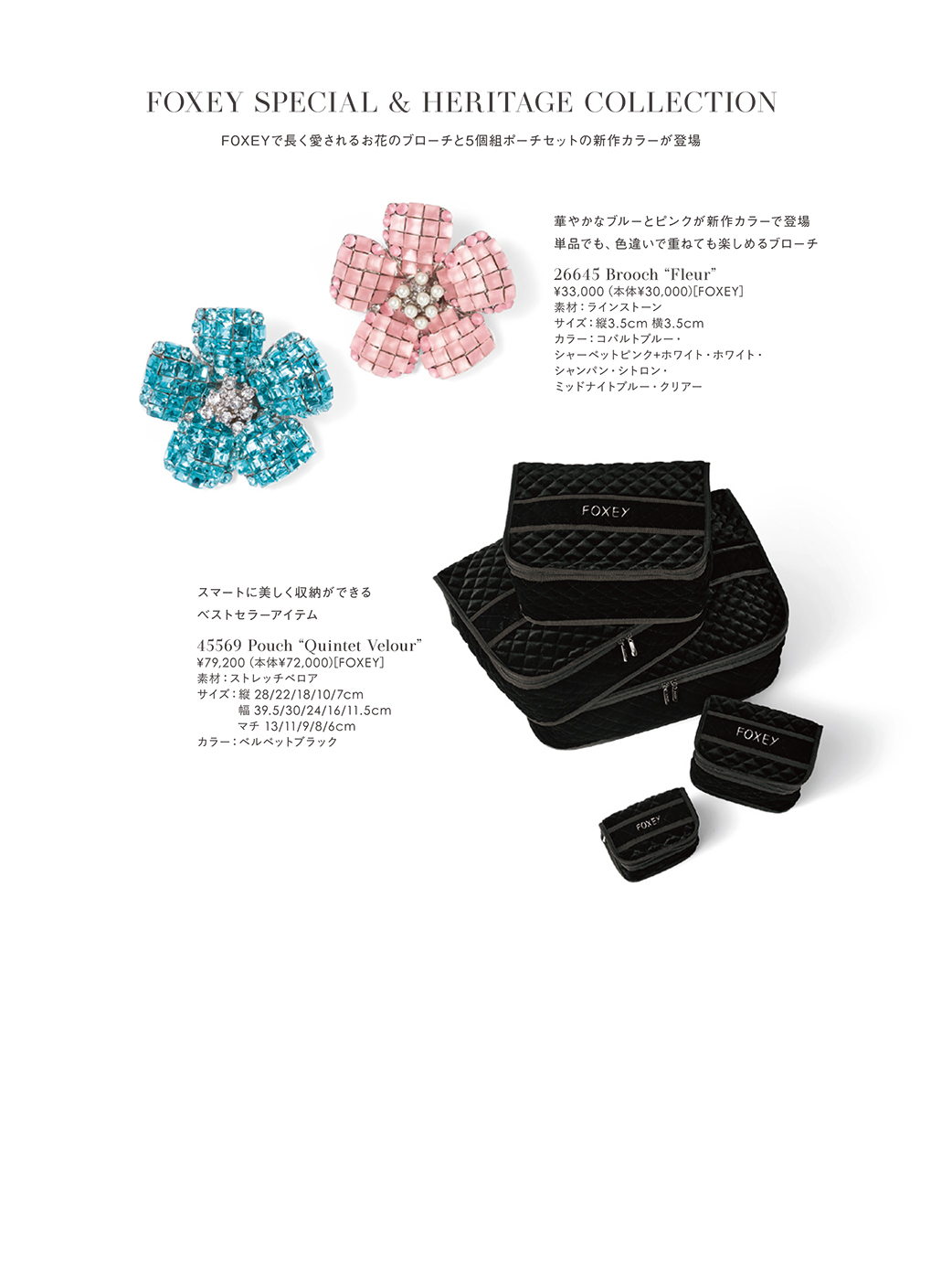 FOXEYで長く愛されるお花のブローチと5個組ポーチセットの新作カラーが登場